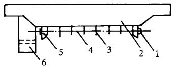 1 - 螺母;2 - 主梁;3 - 吊梁;4 - 拉杆;5 - 支架;6 - 司机室